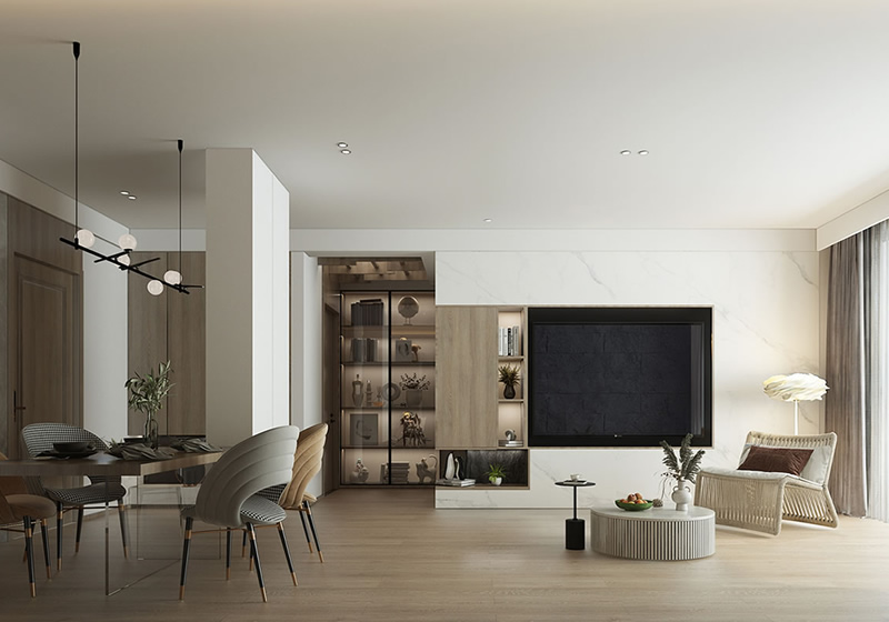 • 145㎡簡約風(fēng)三人居 無主燈設(shè)計+仿石材真get